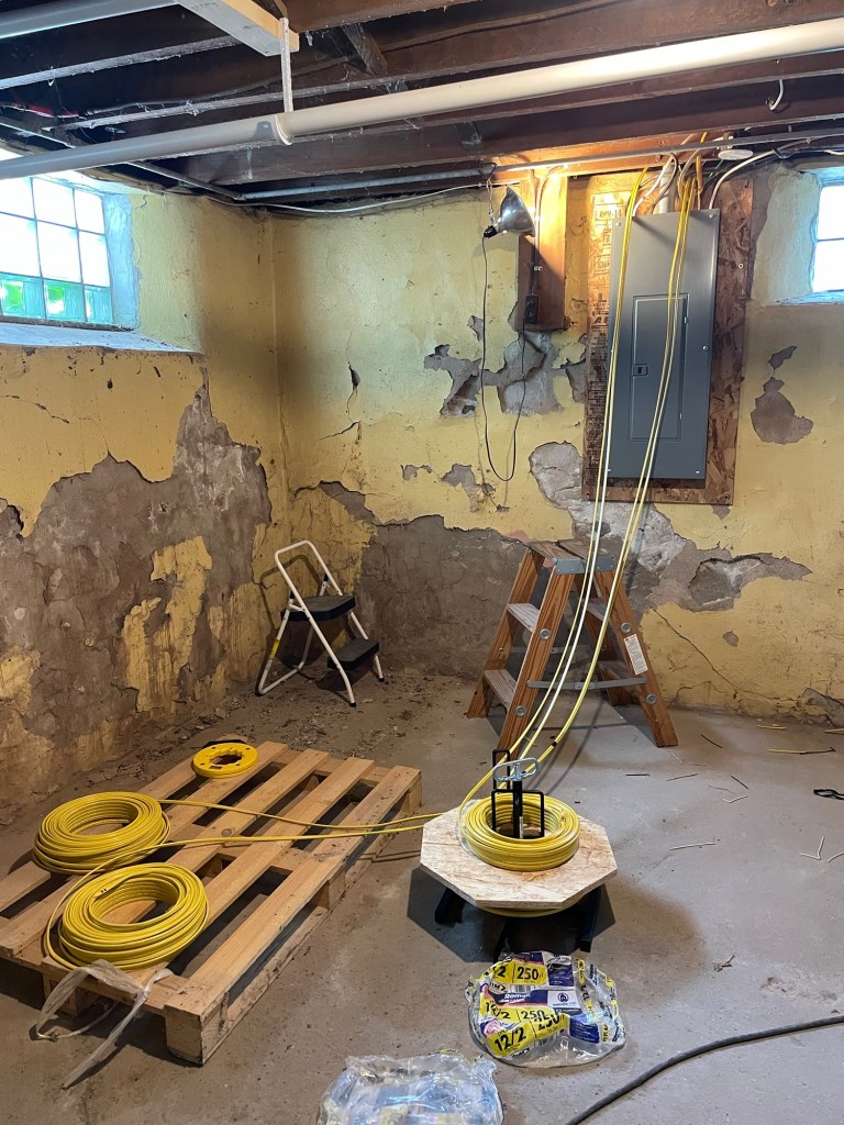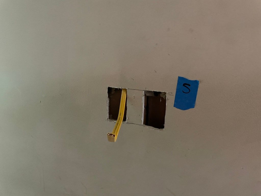 There were hiccups and setbacks. Brad ended up taking vacation days and half days to work through the list. We completed it with time for him to attempt to get working lights in that end of the house. A manufacturing deviation made installing the switches difficult at best. The lighting would need to be run from extension cords, but at least we were ready!