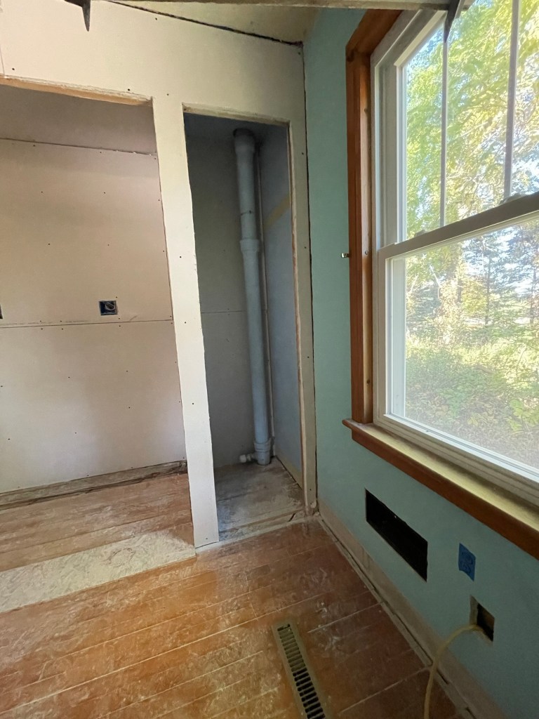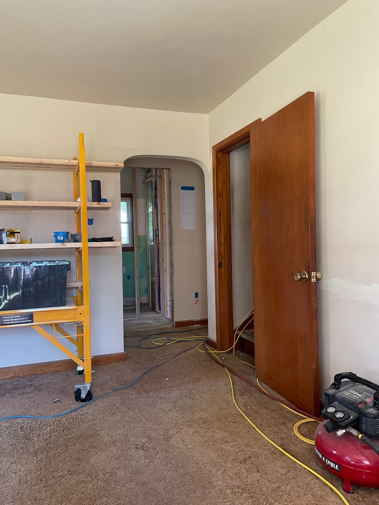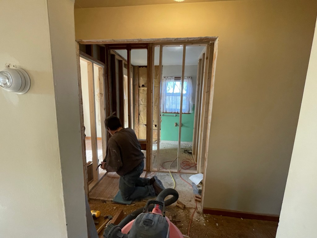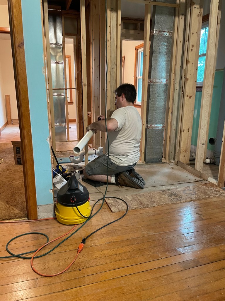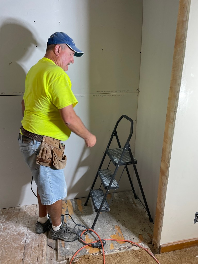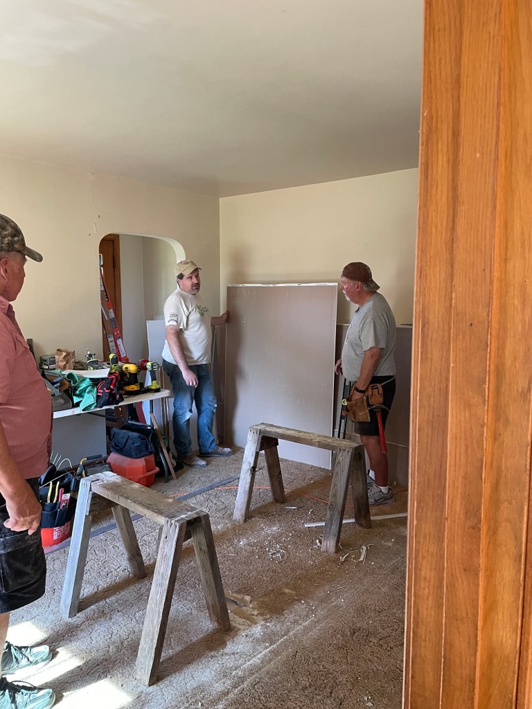 The drywall was bought and stacked strategicaly throughout the house to avoid putting too much weight on any section of floor joist. Our friend Dan had helped Brad pick it up from Menards and then Dan and Frank helped Brad get it into the house on Thursday.
