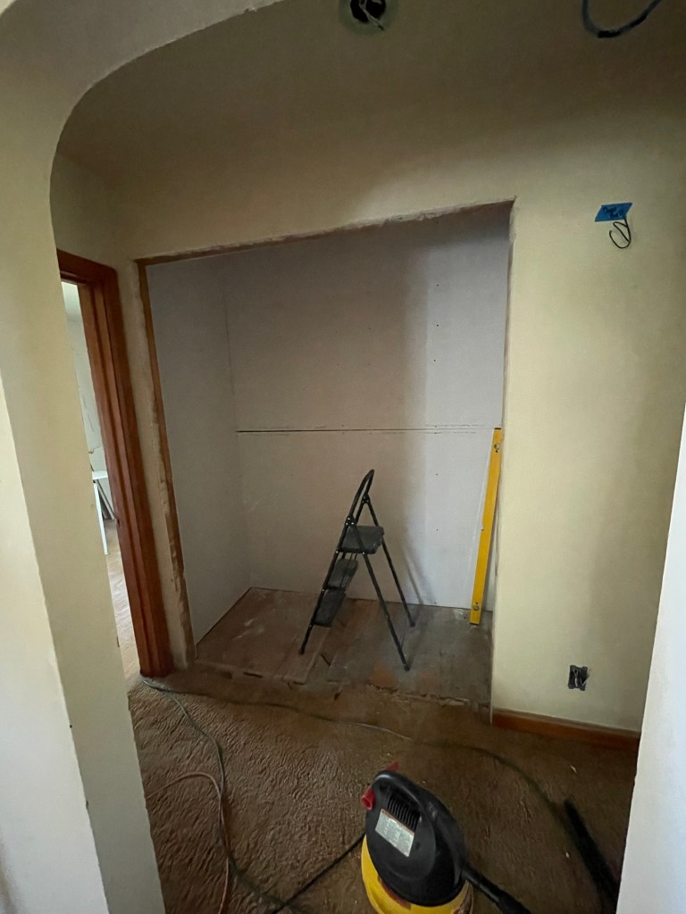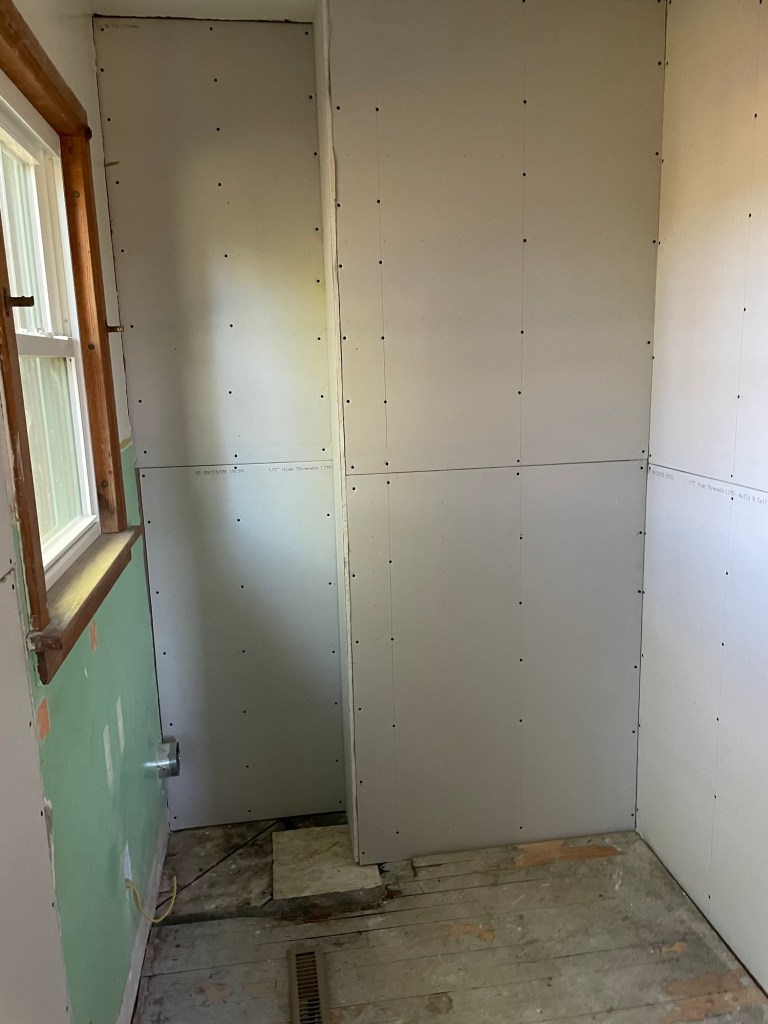 D-Day for the house was Drywall Day. Frank was bringing some friends who’ve hung a sheet or two to help get the dry wall hung in the laundry, 2 closets, and part of the downstairs bathroom.