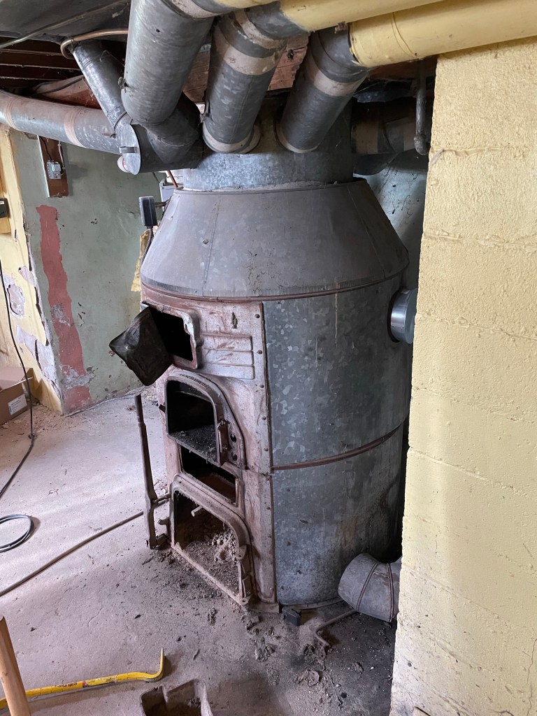 If you think way back to Baby It’s Cold Outside, you will remember that we bought the house with 2 furnaces in it. A “newer” propane furnace and a big gravity (octopus) furnace I have named “the beast” that acted as a plenum for the propane furnace. Honestly it was a very convoluted set-up. We discovered that not all the burners were working on the propane furnace (the source of the propane smell we detected only outside) and with the help of our HVAC friend Greg managed to make it limp through 3 winters.