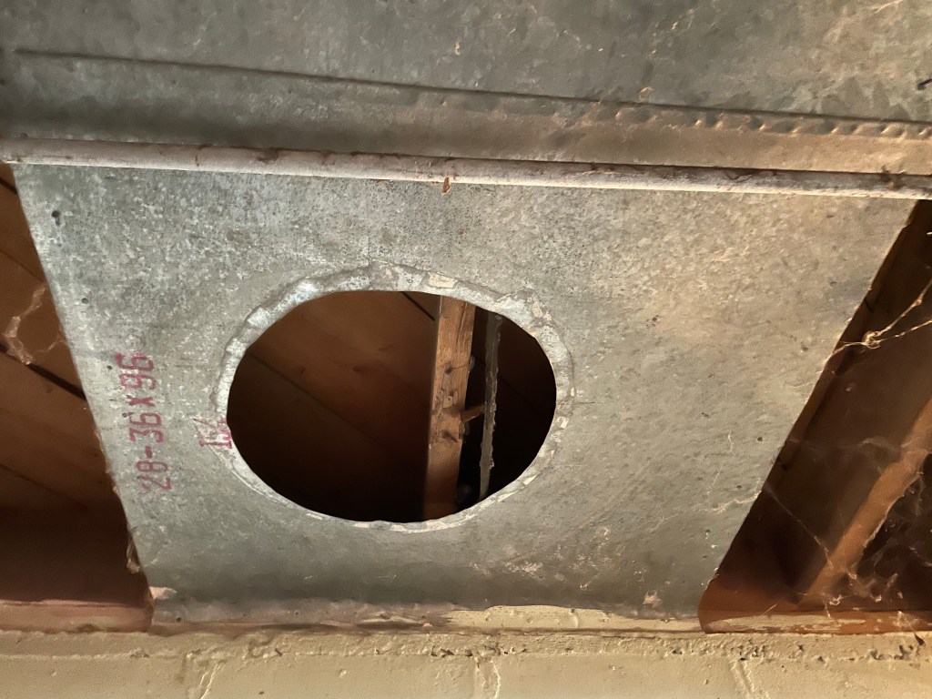 Originally we thought (I thought) we could re-use the duct work. After taking it down and seeing inside we opted to put in new, and I wholeheartedly agreed. The ducts are 85+ years old, and for the first few decades were connected to a coal burning furnace. To say they were gross was an understatement. It was not worth our time or energy to clean the inside of all the ducting we would need – plus we had gotten some at a price we couldn’t argue with.