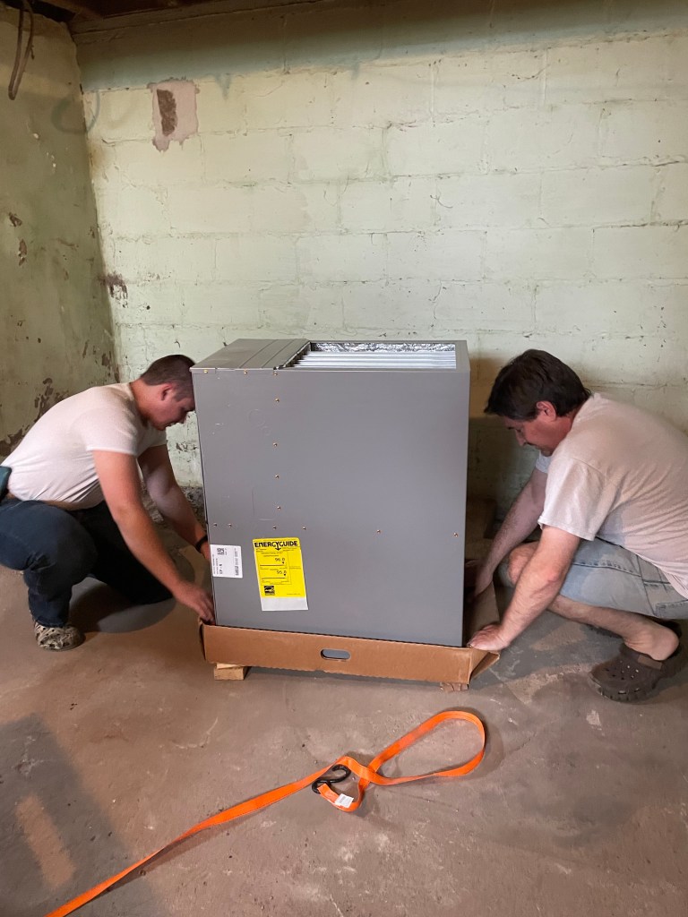 Brad and Brandon moved the new furnace into place and phase 2 of heat ends in late summer with fall and winter seeming far off (even though we know it will be here before we know it).