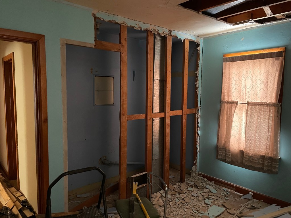 Once this room was prepped, it was time to turn to the bathroom and prepare that for gutting, that will be another post.