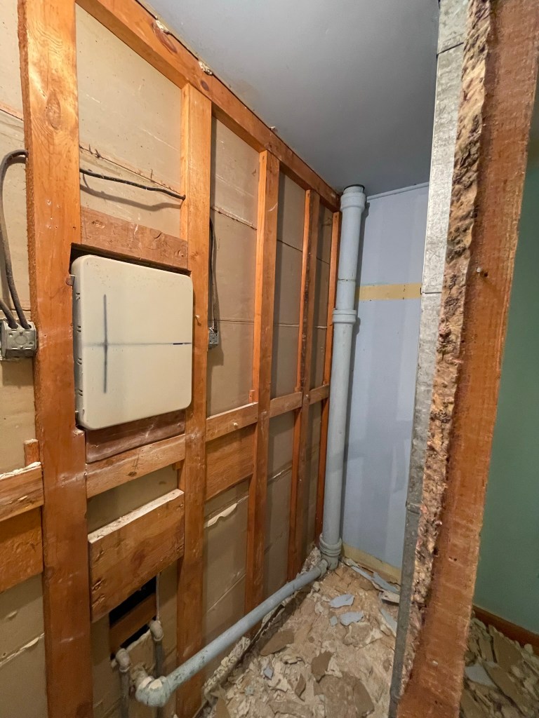 Over a few days I ripped down the drywall and plaster on the walls of the closet of the bedroom that is destined to be the new bathroom.