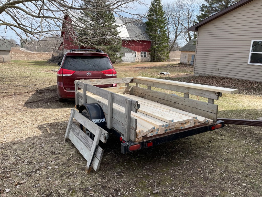Brad did fit in getting a load of lumber to start work on the new walls for the transformation of the former bathroom, 2 bedroom closets, and a bedroom into a bathroom, laundry room, hall closet, and walk-in bedroom closet. He would work on framing of the walls, and shimming studs where needed. More on that in another post.