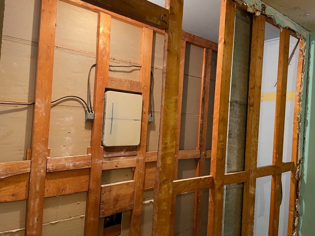 Back to the open walls of the closets and new bathroom. We had a punch list taped to the wall listing what we needed to complete by the end of September, when the drywall crew would arrive.